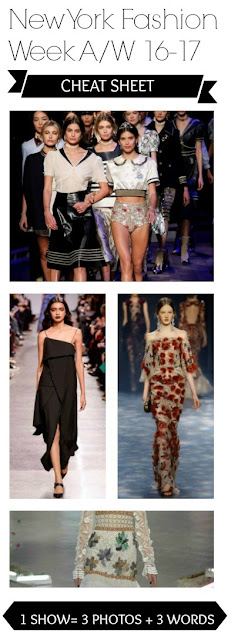 That's right, I'm back with my demanded Fashion Week cheat sheet series, in which I sum up each key show in 3 photos and 3 words. So basically, I've done all the hard work for you and you can sit back, relax and absorb!